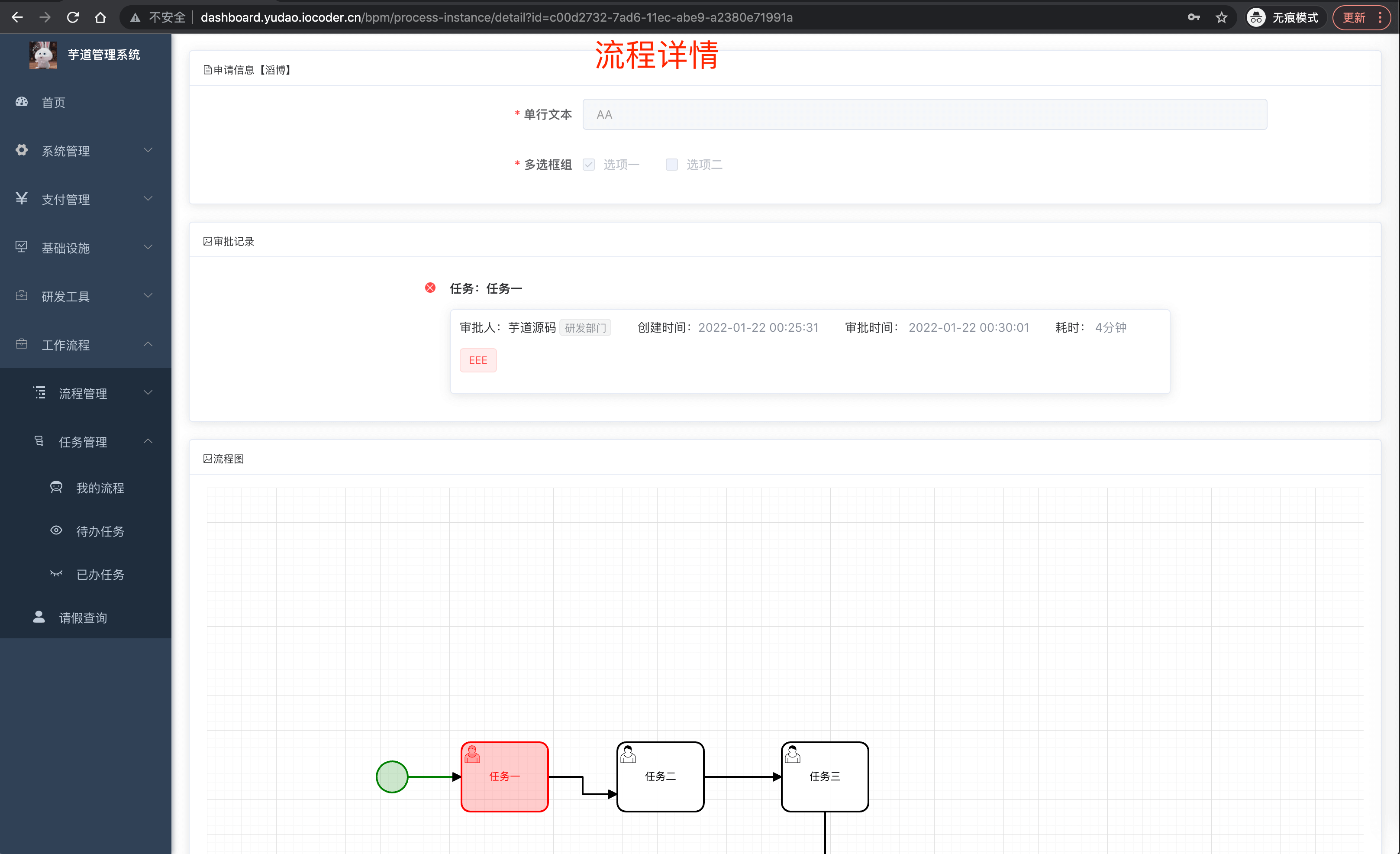 | 🚀 | 已办任务 | 查看自己【已】审批的工作任务,未来会支持回退操作 |