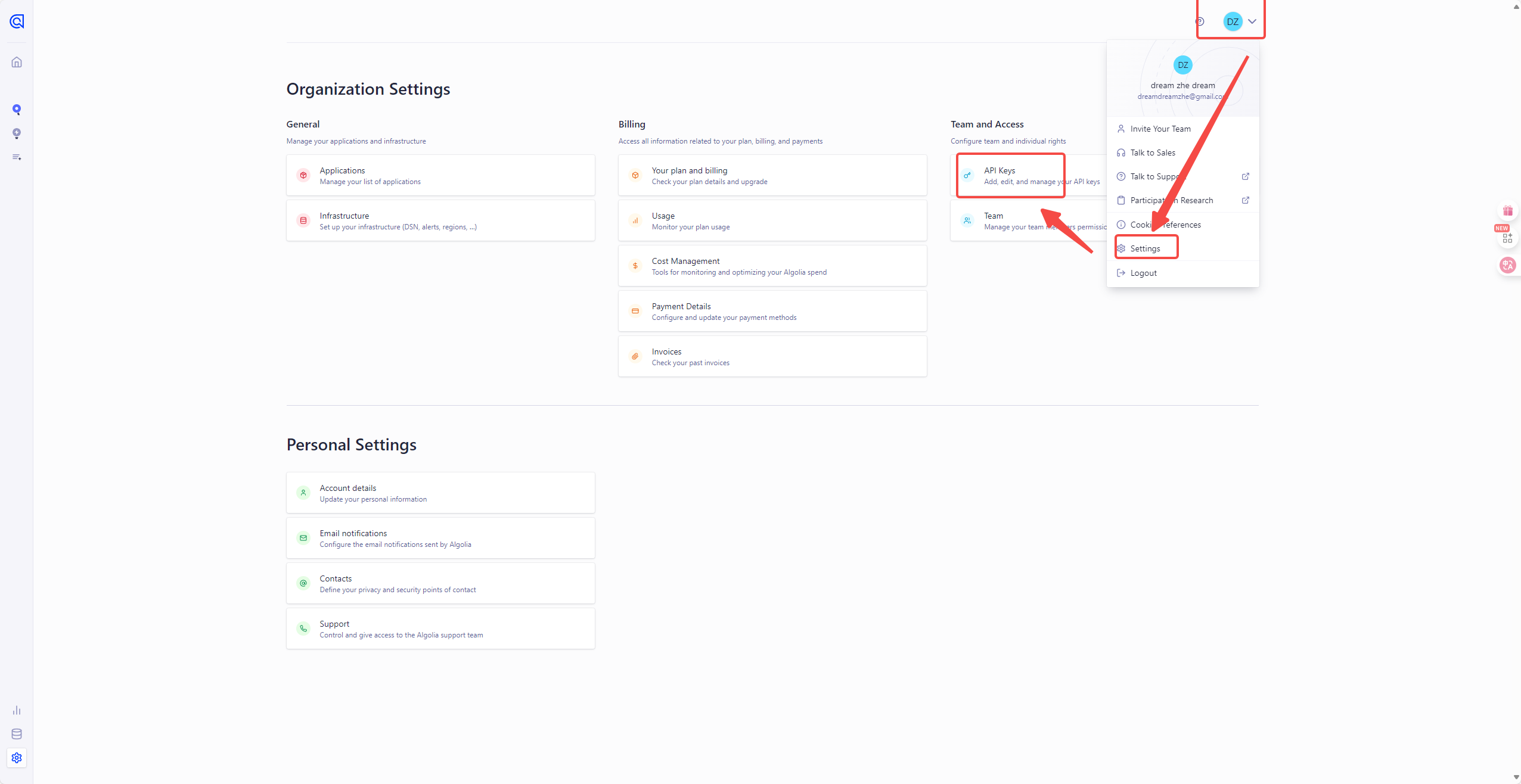 拥有应用后点击个人头像,点击设置,点击API Keys查看自己的应用id和key。
