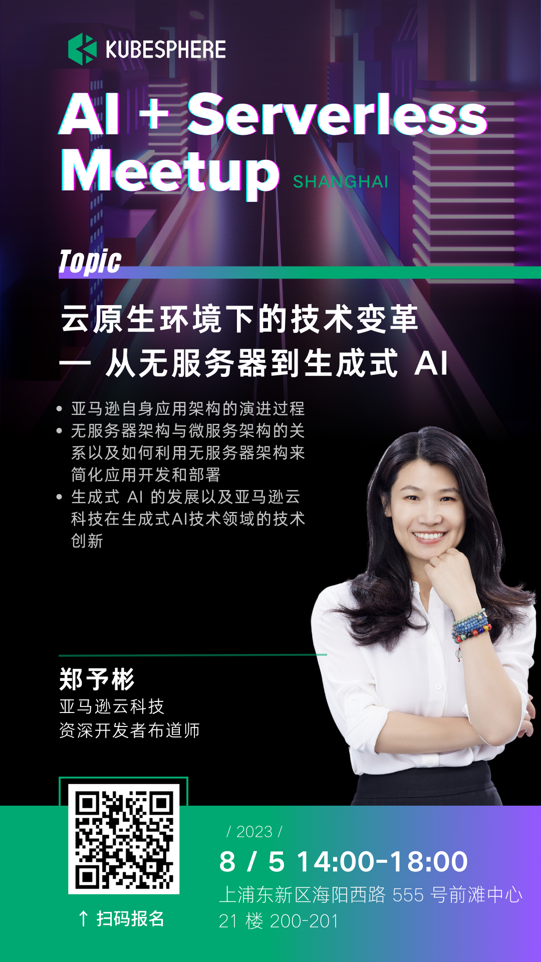 此次 Meetup,我们邀请到了亚马逊云科技、驭势科技、青云科技、华东师范大学、EMQ、Zilliz 等企业或组织的专家们,来为大家分享 AI + Serverless 及云原生主题的技术干货。