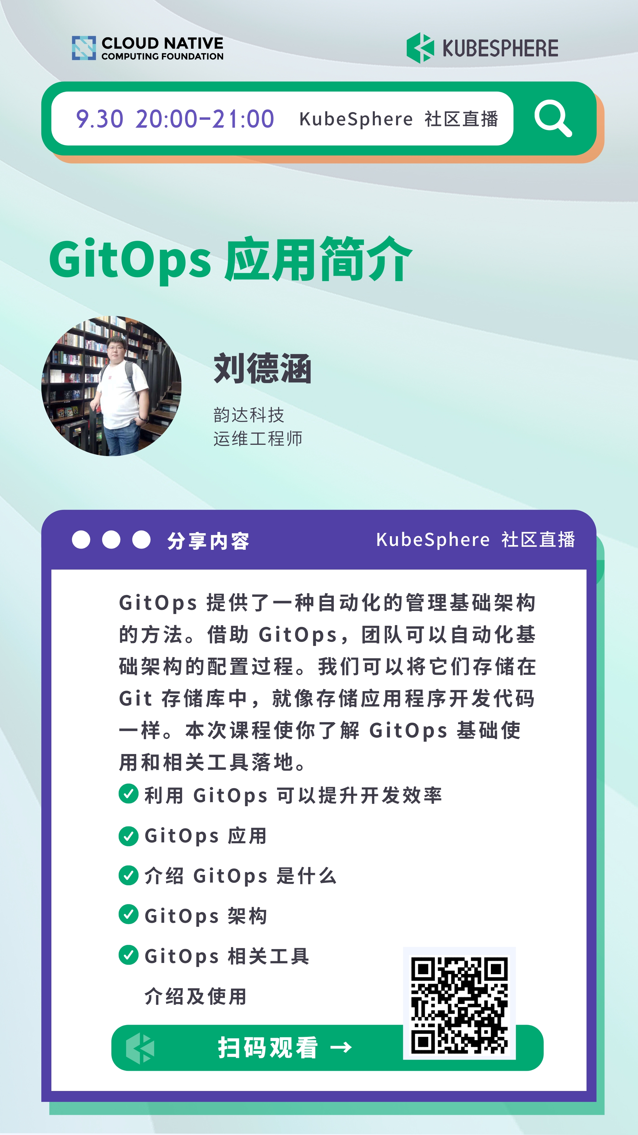 可扫描官网底部二维码,关注 「KubeSphere 云原生」公众号,后台回复 `20210923` 即可下载 PPT。