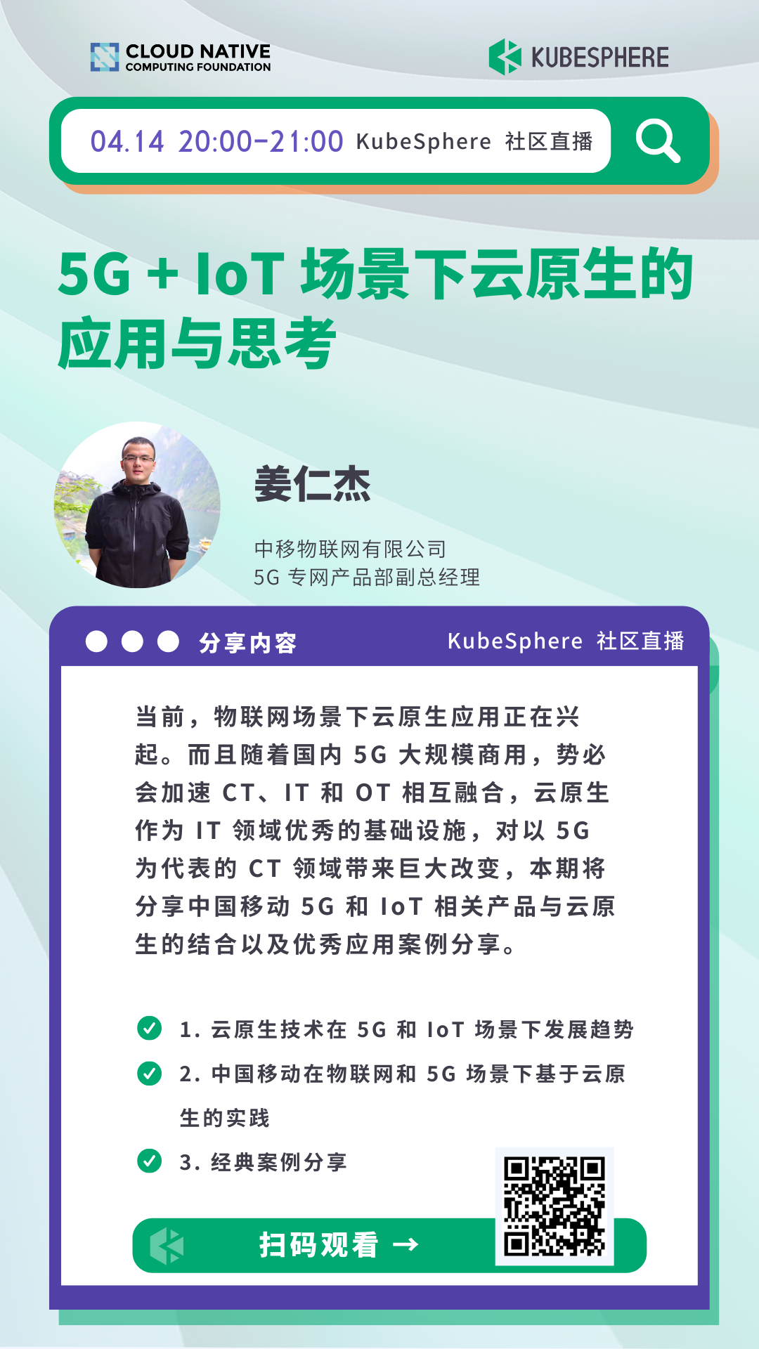 description: 本期将分享中国移动 5G 和 IoT 相关产品与云原生的结合以及优秀应用案例分享。